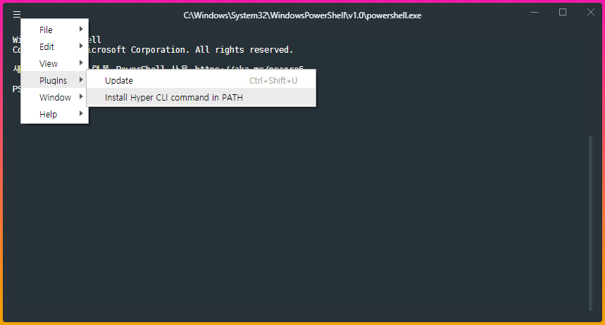 hyper를 처음 설치하고 실행하면 cmd 로 했을 때 처럼 ls 같은게 안됩니다. 그래서 기본을 PowerShell로 변경을 하면 좋죠.