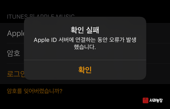 뭐여?? Apple ID 서버에 연결하는 동안 오류가 발생 했습니다???