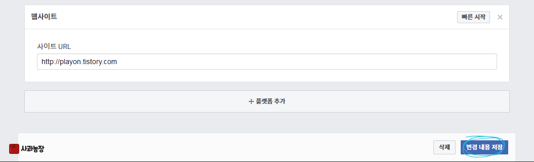 웹사이트 URL을 입력하고 변경 내용 저장 버튼을 누른다.