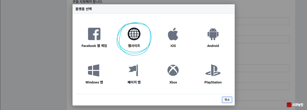 홈페이지랑 연동하는거니깐 웹사이트를 선택