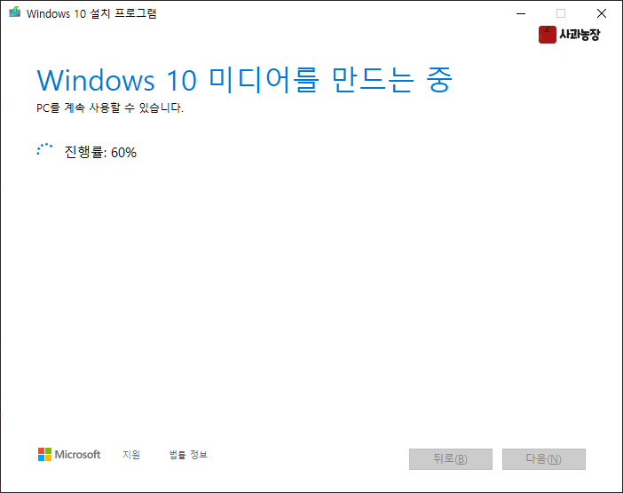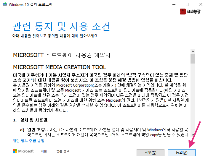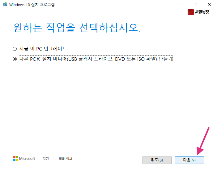 이 파일을 실행해서 설치 프로그램이 담긴 미디어를 만들어 보겠습니다.