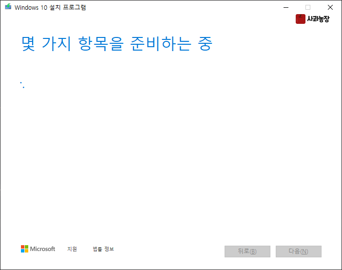 윈도우 파일을 다운로드하고 있습니다.