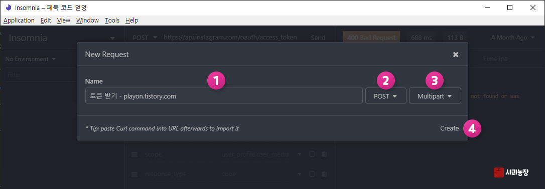 이제 cURL 요청을 해야하니 간편하게 요청할 수 있는 툴이 필요합니다. (포스트맨이나 인썸니아가 쓰기 좋네요.)