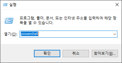 키보드 win + r 버튼 눌러 powershell을 실행 해 줍니다.