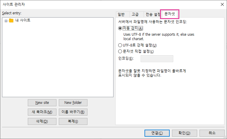 암튼, 한글 이름이 깨지거나 받아지지 않을 때는 문자셋 설정으로 다운로드 받을 수 있습니다.