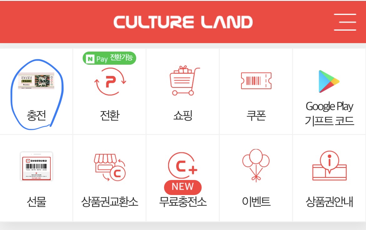 위에 있는 링크를 클릭하면 바로 컬쳐캐시로 바로 충전을 할 수 있습니다.