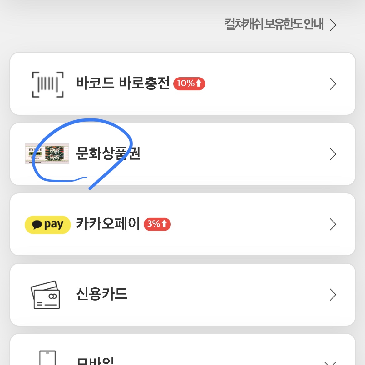 문화상품권을 눌러서..