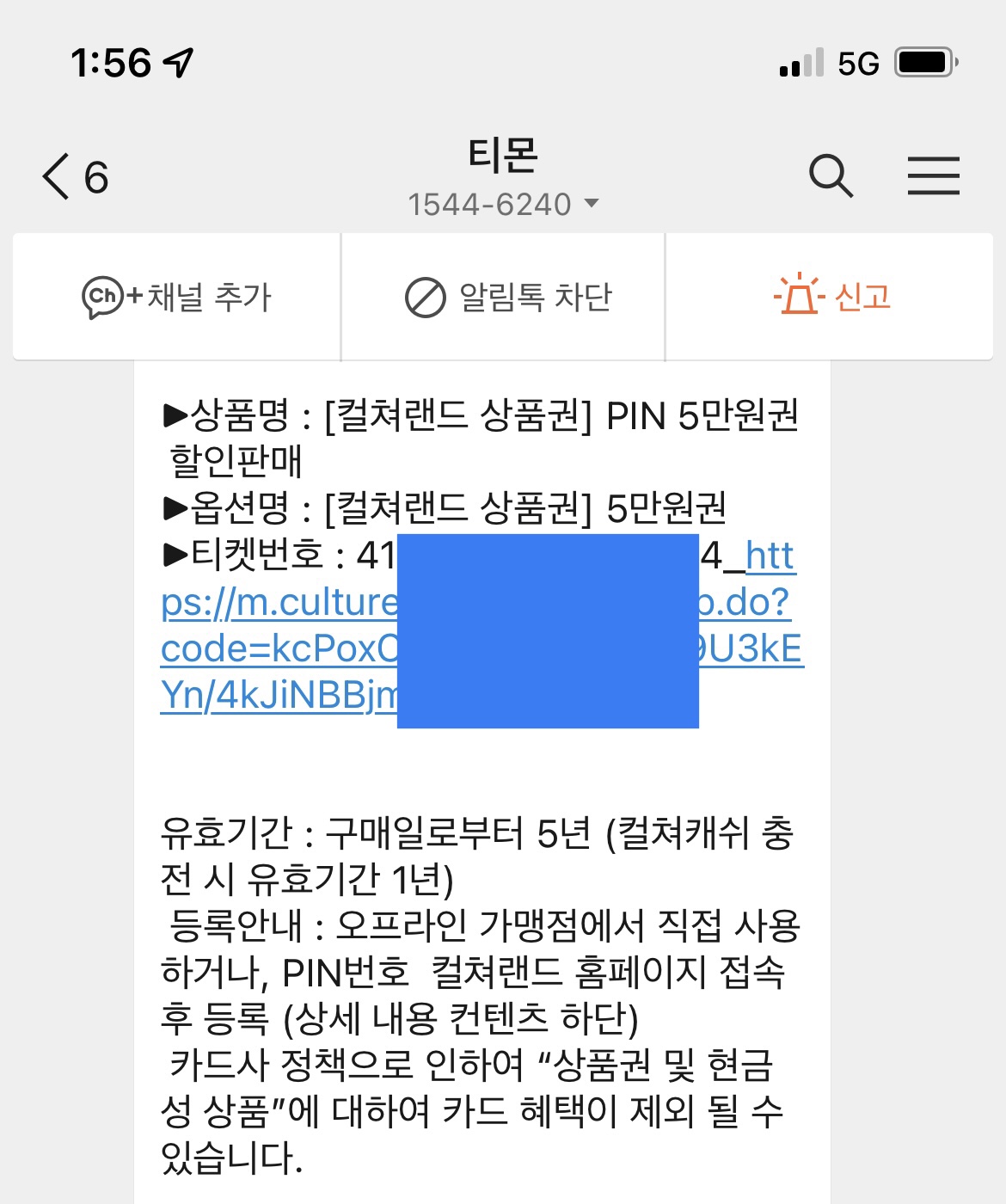 상품에 들어가서 결제를 하면 이런 식으로 문자나 카톡으로 쿠폰이 도착합니다.
