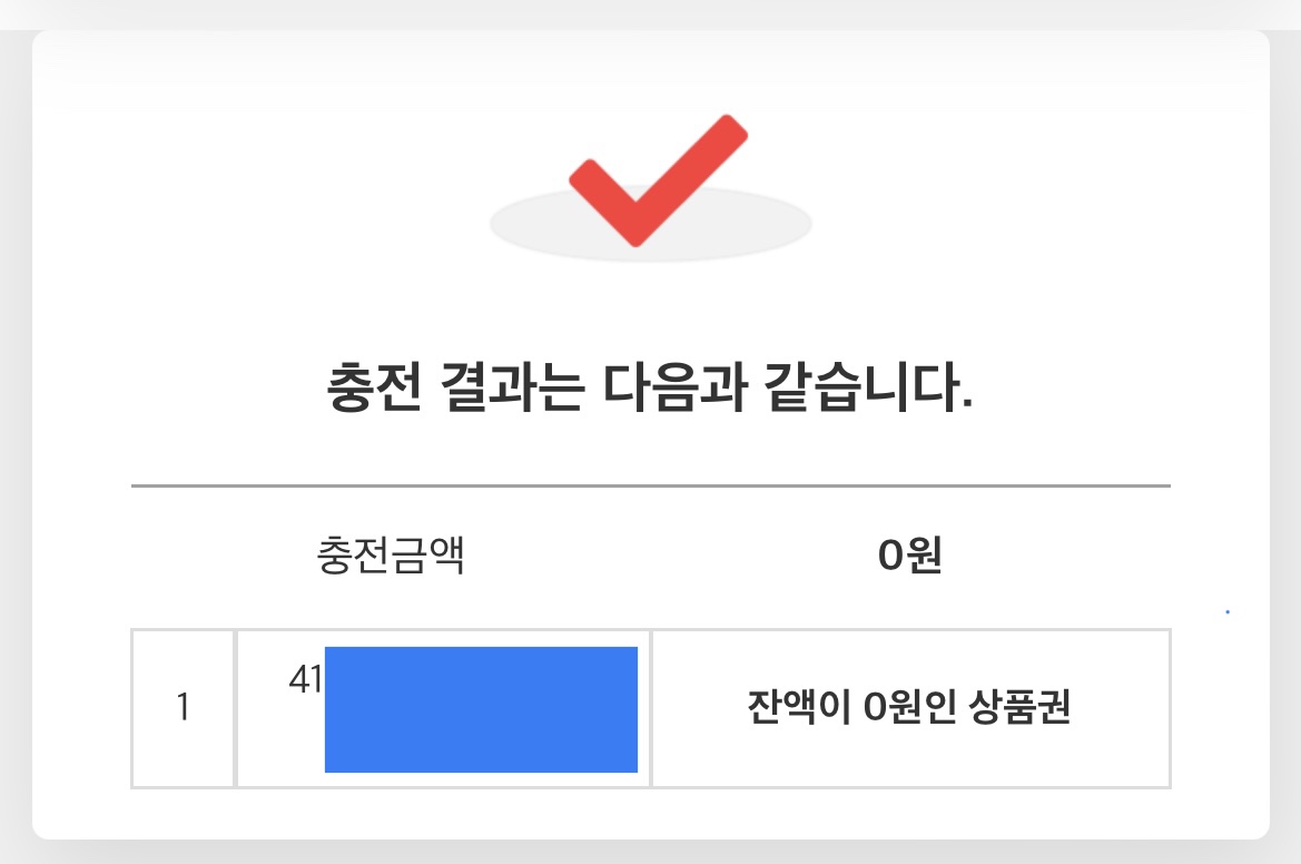 저는 이미 충전한 거 블로그에 올리려고 다시 하다 보니 충전금액이 0원으로 나왔는데 원래대로면 맨 위에 구매했던 상품권 충전금액이 나옵니다.