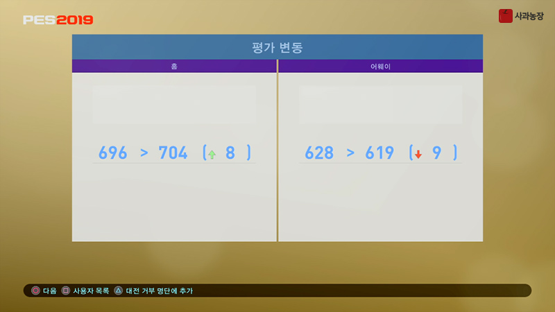 야금야금 몇판씩 하던 PES2019..