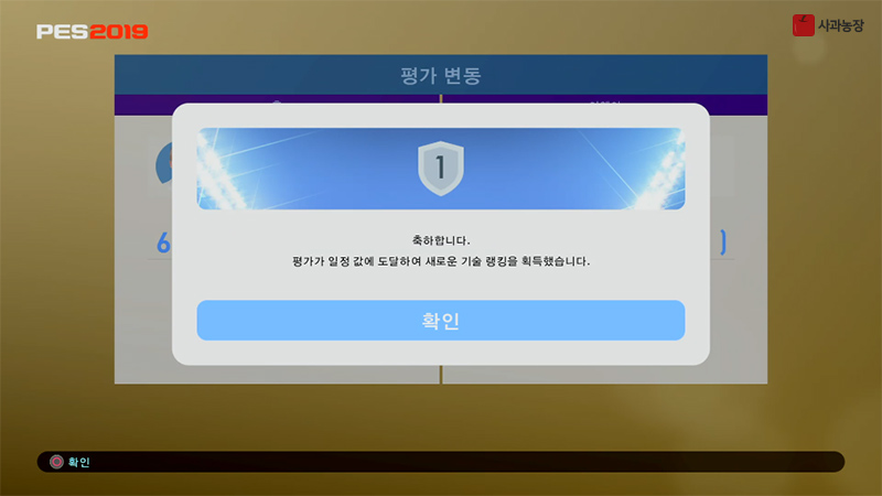 평가가 일정 값에 도달하여 새로운 기술 랭킹을 획득했습니다.