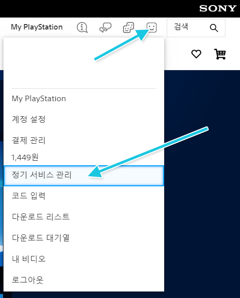 4. 로그인 후 오른쪽 상담에 "내 아이콘"이 있는데 클릭 후 "정기 서비스 관리"로 이동합니다.